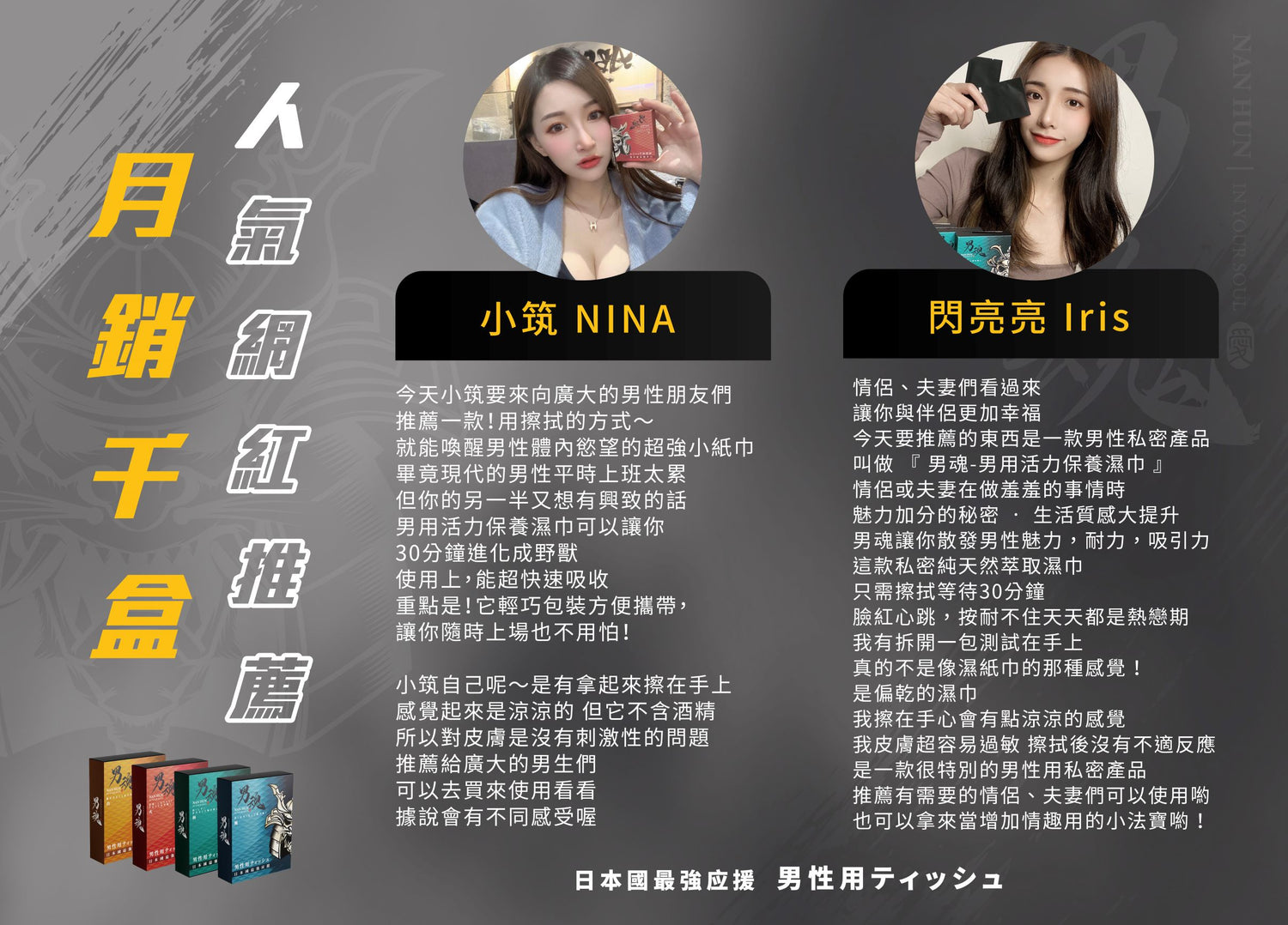 公告:男魂濕紙巾為偏乾的,產品測試當含水量過高的時候,反而產品揮發速度偏慢。效果並沒辦法達到平衡。